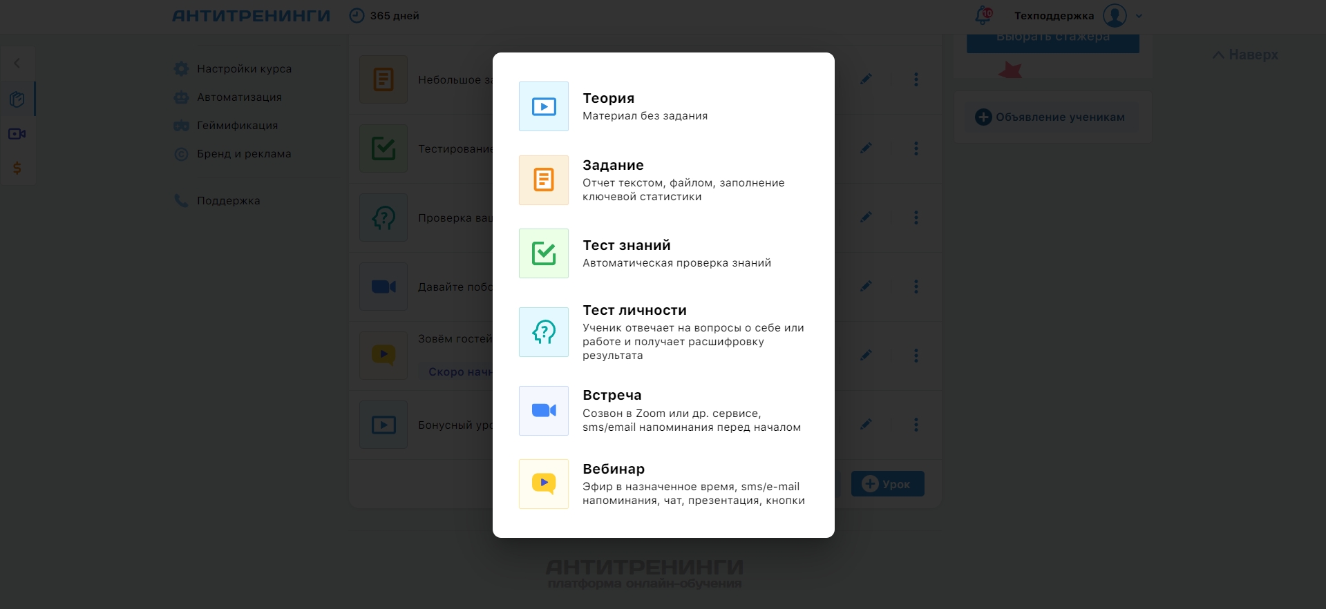 Мы разобрали частые вопросы по созданию и настройке уроков на платформе АнтиТренинги.