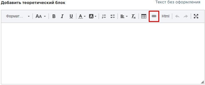 В поле «Добавить теоретический блок» вы можете вставить и отредактировать обучающий материал.