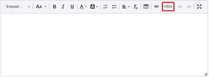 Кнопка «Html» позволяет перейти в режим редактирования в HTML-коде. С помощью этой функции вы можете интегрировать свои скрипты.