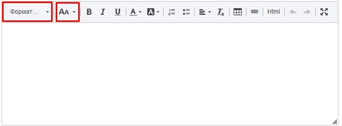 Кнопка «Формат» позволяет выбрать форматирование текста. А кнопка «Аа» - размер шрифта.