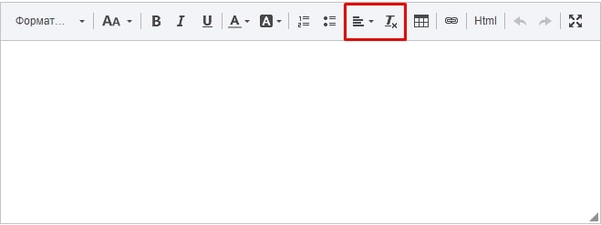 Выравнивание текста «По правому краю», «По центру», «По левому краю» или «Убрать форматирование» выделенного элемента.