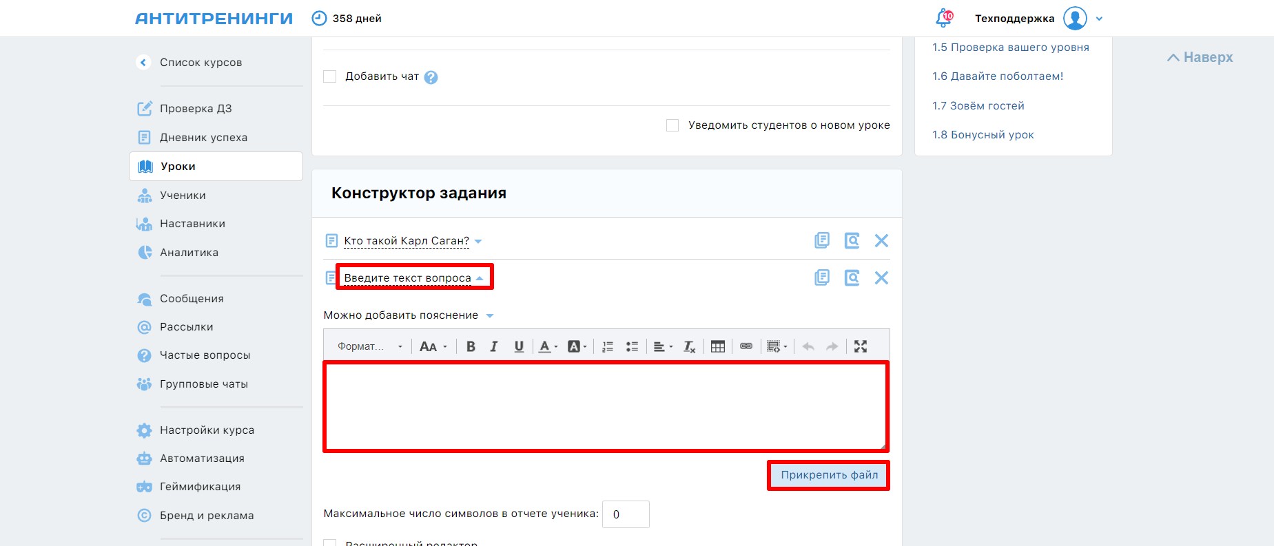 Часто задаваемые вопросы по созданию и настройке уроков на платформе АнтиТренинги.