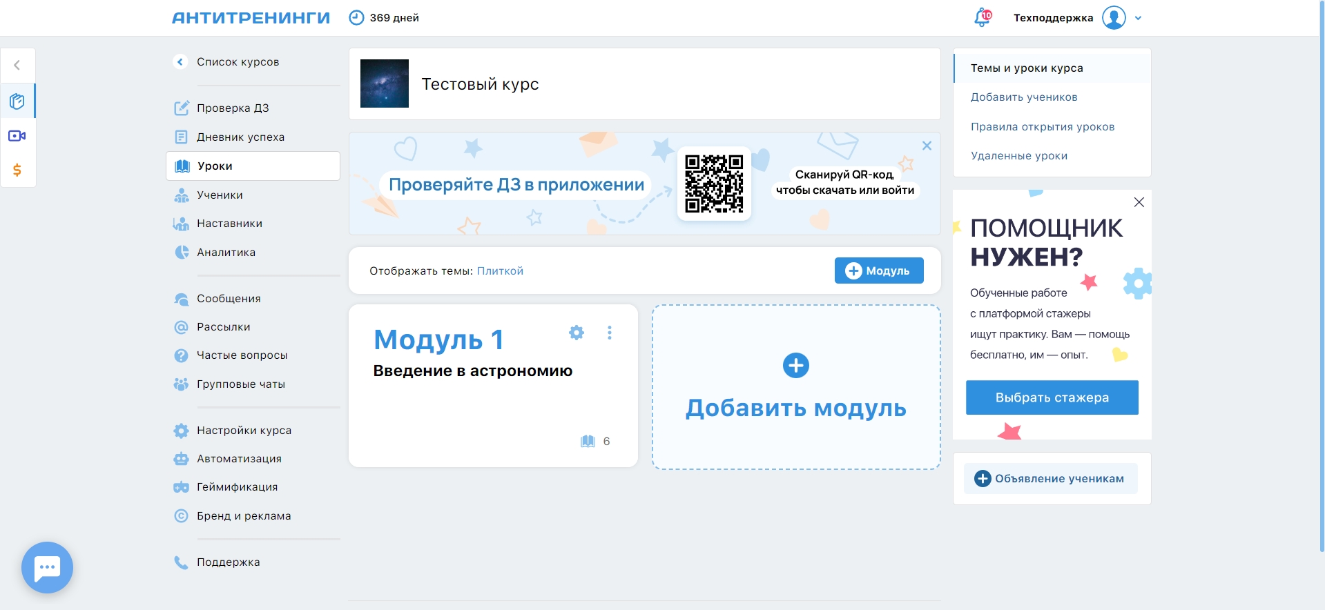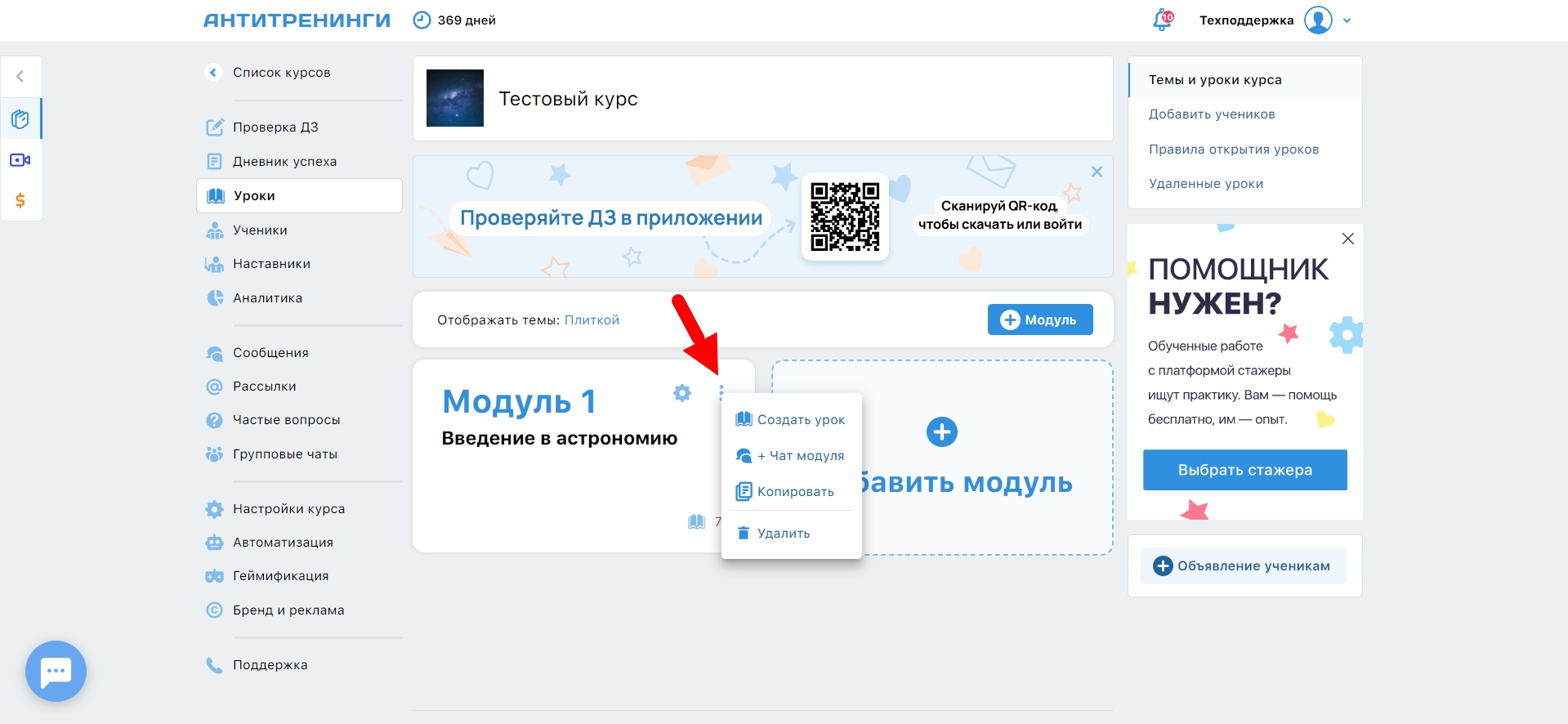 - Как создать модуль уроков на платформе АнтиТренинги?